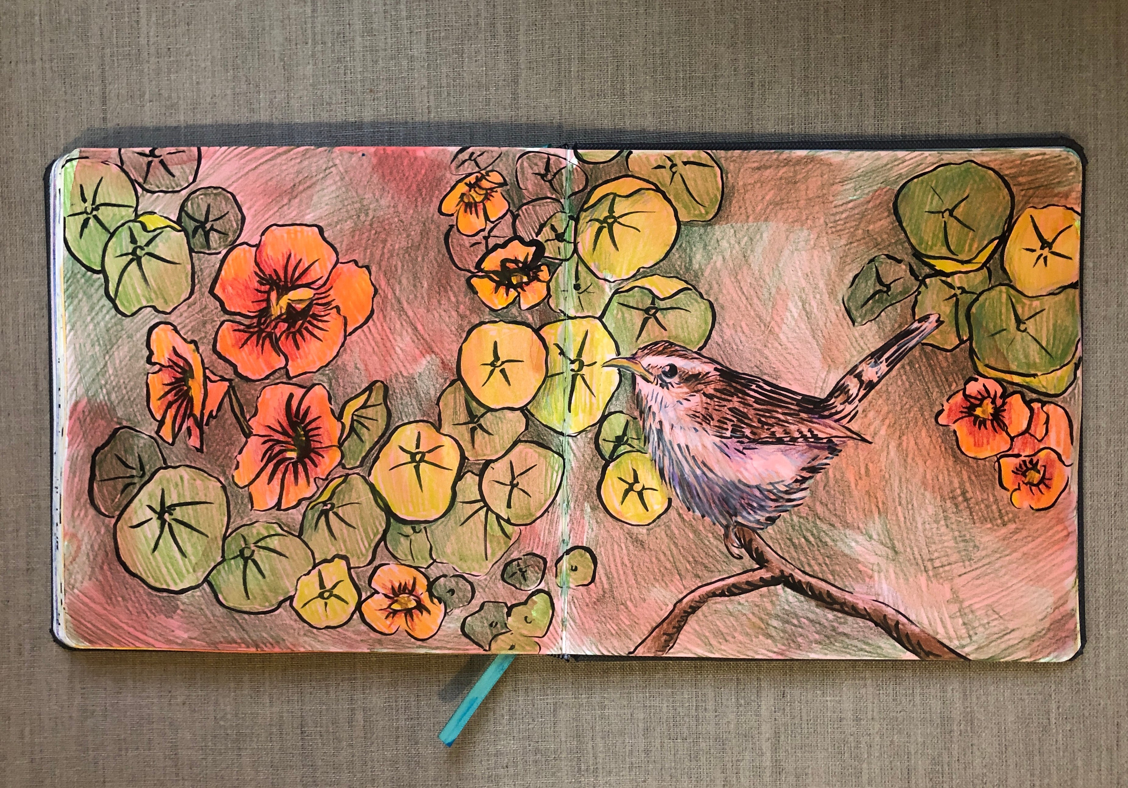 Nasturtiums and the Wren